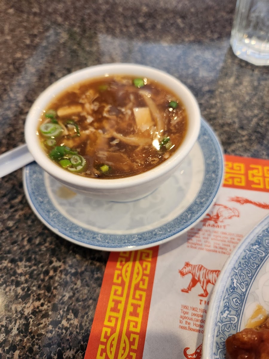 First-time experience. This restaurant was clean and very friendly. I loved the huge fish tank as you walk in. The service was fast and friendly. I went on lunch the lunch special was perfect. It comes with soup, egg roll and your main dish with either chomein or fried rice. You can do both if you prefer! We were in out in less than an hour. All the food was served hot and delicious! Definitely recommend!!!!